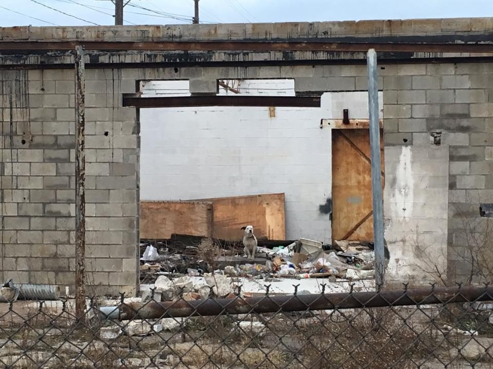 流浪動物的生活非常艱難,很多好心人和動保組織發現後會盡力安置,為牠們找家。不久前,「底特律青年和動物救援組織」(Detroit Youth & Dog Rescue)負責人Mike Diesel接到民眾電話,對方稱自己開車上高速時,在路邊的一棟破舊建築裡看到了一隻被遺棄的狗狗。Mike和志工們立刻出動,去尋找那隻可憐的浪浪。