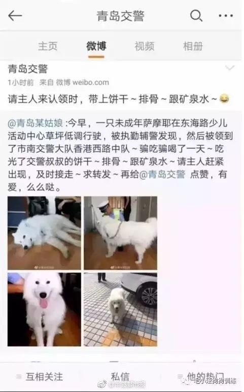 先前,青島交警在市南區音樂廣場發現了一隻亂逛的薩摩耶。大家都知道,薩摩耶這種狗號稱「微笑天使」,看起來乖巧軟萌,一下子就擄獲了交警叔叔的心。交警沒有看到狗狗的主人,就給牠餵了點水並帶回大隊,還在微博發文,呼籲主人看到後快點聯繫。