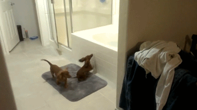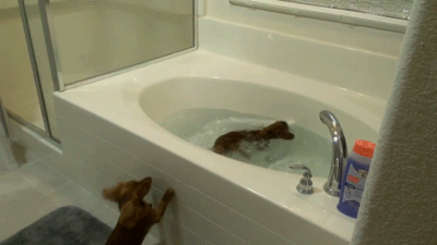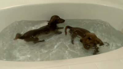 「準備玩水啦!」 2隻迷你臘腸要洗澡High翻 狂磴小短腿跳進浴缸裡