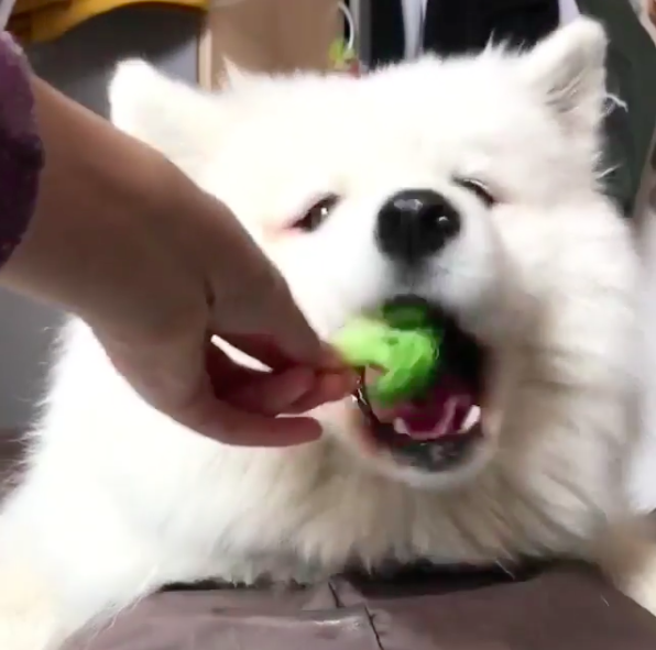 呆萌的薩摩耶一直沒發現主人的陰謀。雖然主人壞壞的,但也是為了毛孩好,狗狗應該也能理解主人的良苦用心吧。