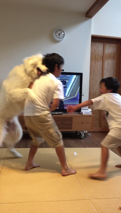 機智勇敢的汪星人又被網友圍觀了!汪星人不僅僅是全家人的開心果,還是一位超貼心的家人。網友河村健司分享了一段兩個小朋友在家中打架的影片,愛犬大白熊的溫暖舉動感動了大批網友。