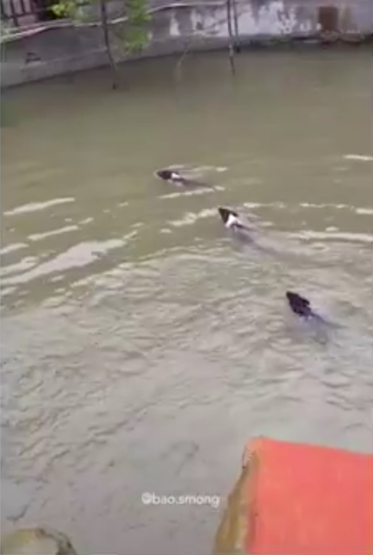 從這些小豬熟練的動作來看,跳水、游泳應該是牠們的常規活動。夏天能在水中盡情消暑,未免太幸福了吧~