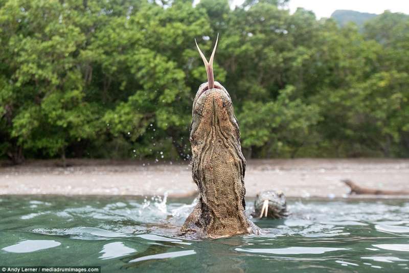 美國攝影師Andy Lerner到印尼科摩多國家公園拍攝科摩多龍(科摩多巨蜥),結果比想像中更可怕的畫面就出現在他的眼前!2隻超過80公斤的科摩多龍一直想要爬上他們的船,幸好有專業的地陪在身邊不斷阻止,才避免了被牠們攻擊。