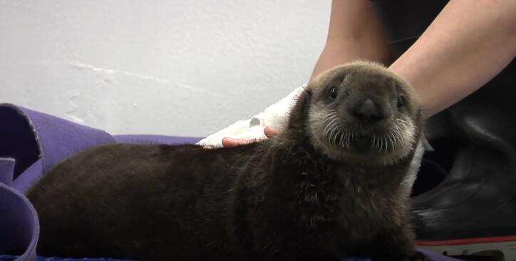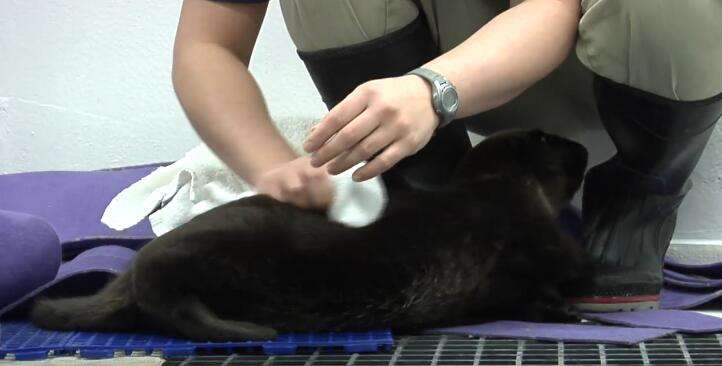 水獺軟綿綿的身體慵懶可愛,水汪汪的大眼睛看起來純真又無辜,一舉一動都融化人心。下面這段影片中飼養員正在給小水獺清理毛髮,小水獺面對鏡頭的害羞反應萌翻了。