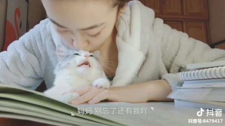▼影片中可以看到,這隻貓咪趁著正妹主人來看書時,竟然跑到她懷中不斷撒嬌。