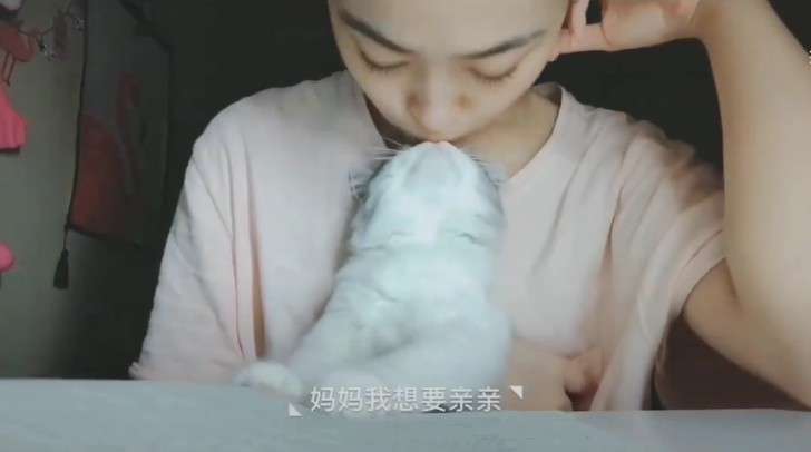 ▼面對不斷討親親的貓咪,正妹主人也都很冷靜的給予反應。