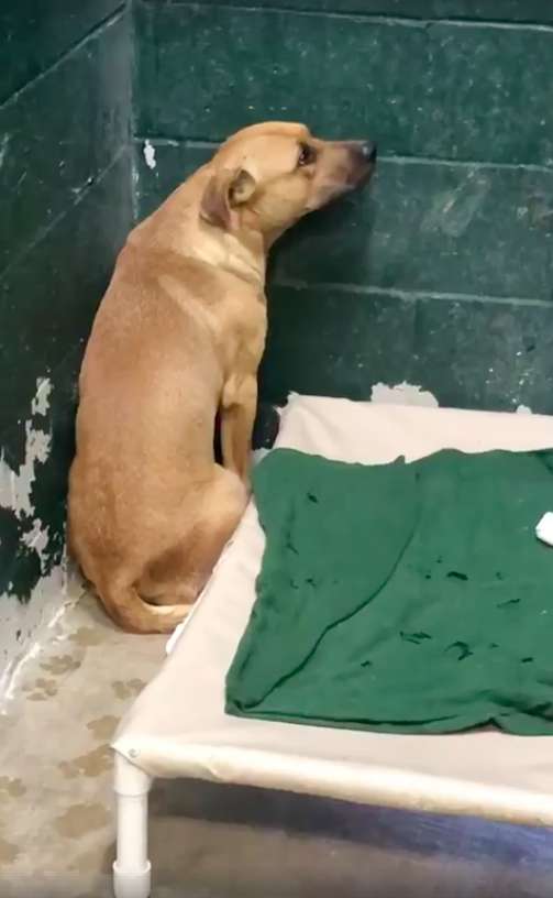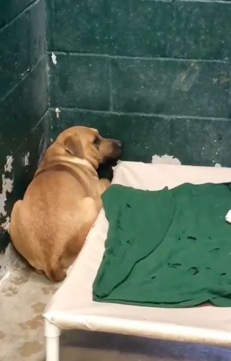 ▼當2歲的Coby發現主人已經不會回來,牠當場嚇到縮起來。不管工作人員如何安慰,牠都只是躲在牆角一動也不動。