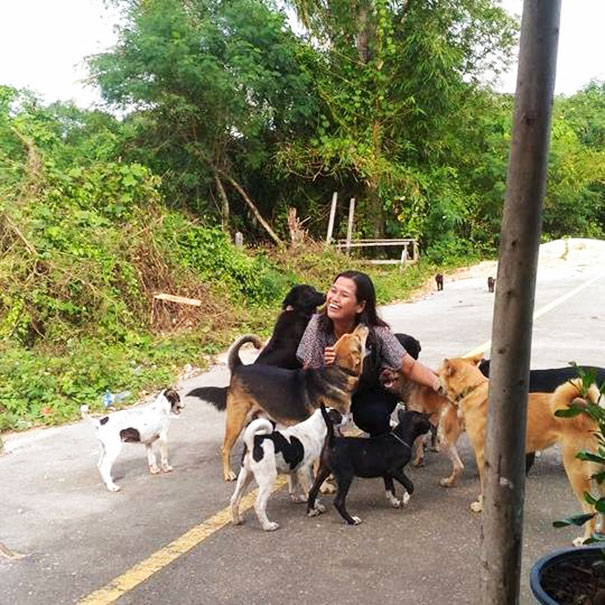 泰國女子Orawan Kaewla-iat是一名愛狗人士,她不忍心看家附近的流浪狗餓肚子,就每天給牠們餵食。狗狗們都很感激,每次見到Orawan都親近到不行,其中最特別的還是一隻小白狗,牠真的很懂感恩。