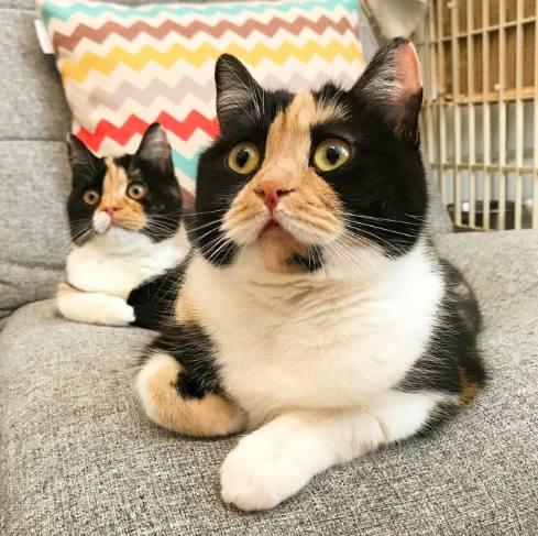 ▼一名飼主表示家裡有隻獨特花紋的三花母貓,臉部花紋特色十足,在某天她溜了出去,飼主等了很久,她才回家,而且沒想到還是帶球回家!竟然懷孕了!