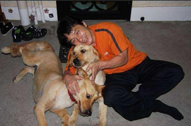 成龍是著名的武打影星,在娛樂圈中被公認為「大哥」。大銀幕上的「硬漢」成龍私底下也有溫柔的一面,這些都是因為他養的兩隻黃金獵犬JJ和Jones。成龍對自己的兩個毛孩子可是寵愛有加,不僅給牠們最好的食物,還抽出難得的空閒時間陪牠們玩耍,絕對是最寵毛孩的主人!