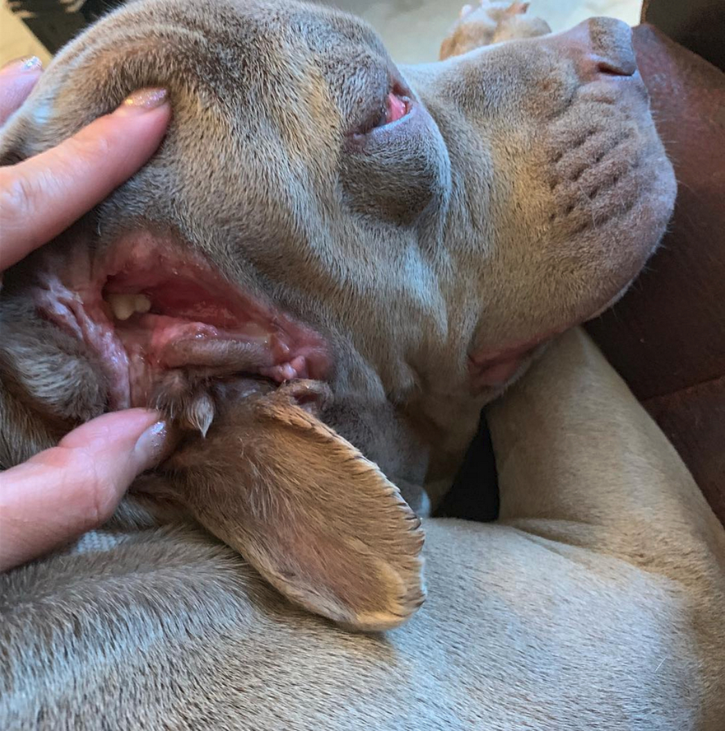 狗狗竟然有2個嘴巴,而且還是長在耳朵的部位??外國女網友Heather Hernandez真的PO出照片,證明她的愛犬Toad就是這樣一個特別的存在。Toad的「第二個嘴巴」會分泌唾液和有牙齒,只是沒有下巴所以無法做張開、閉合的動作。