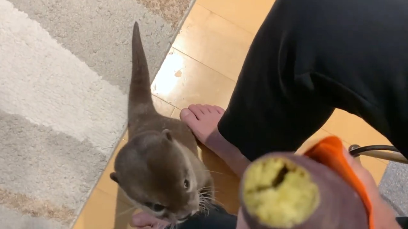 在日本許多人都會飼養水獺當成寵物,到底這種可愛的生物在家裡會做出什麼有趣的舉動呢?日本一位飼主就錄下了自己家中水獺 Kotaro 與烤地瓜之間的有趣互動,大家一起來看看吧!
