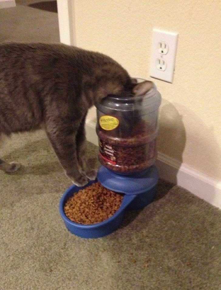 ▼肚子餓的時候感覺自己能吃掉一整桶貓糧!