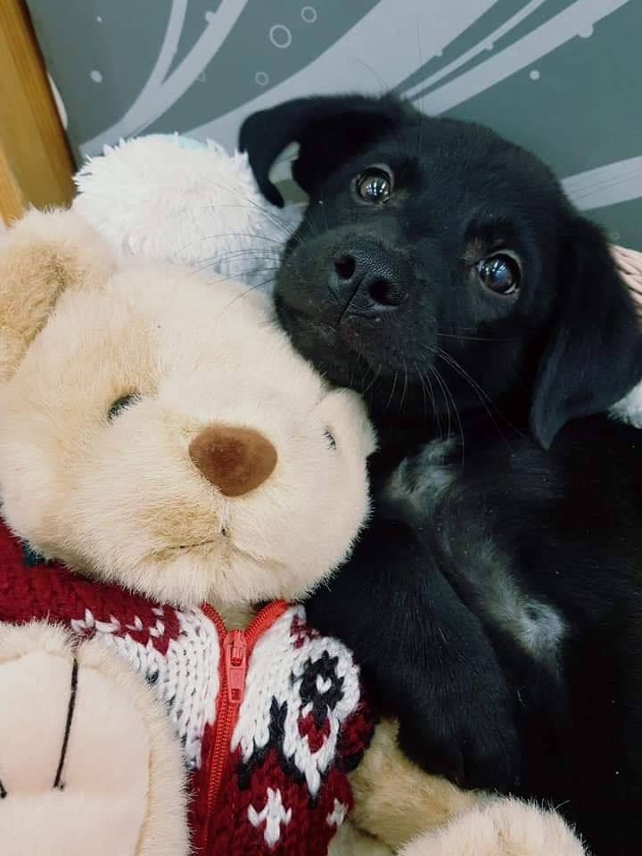 跟媽媽走失好不安…奶氣黑汪「收到熊娃娃」 撒嬌依偎甜睡:是媽媽的感覺