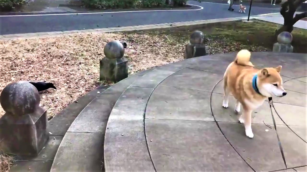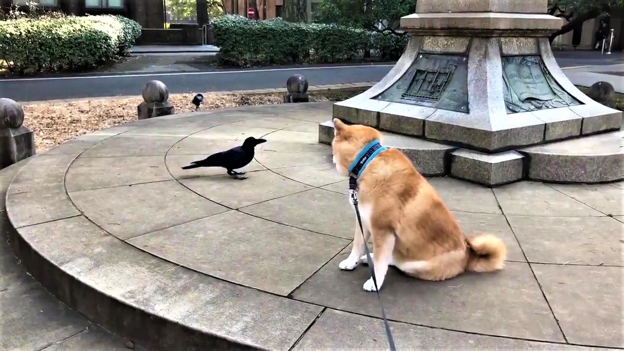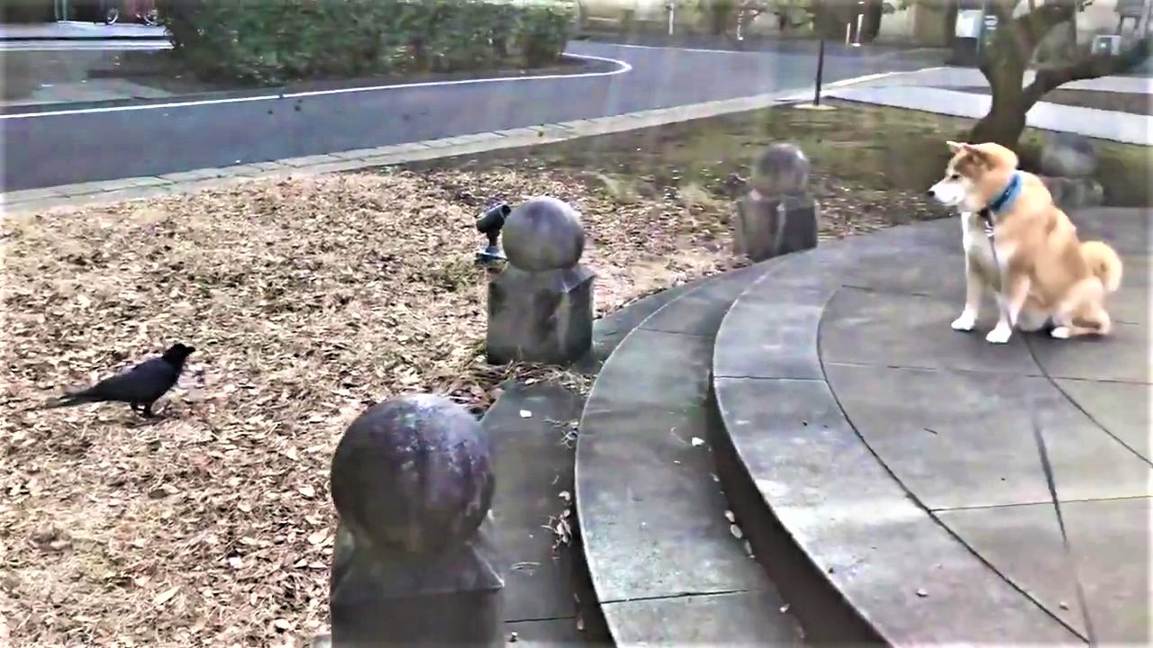 很多狗狗看到路邊的小鳥會好奇追上去,讓狗狗和鳥兒和平相處非常難~日本有一隻叫阿丸(まるMaru)的柴柴,有一天主人帶牠出門散步,牠在公園邂逅一隻烏鴉,雙方四目相對,卻沒有干擾。這平靜有愛的瞬間讓人感覺超治癒。