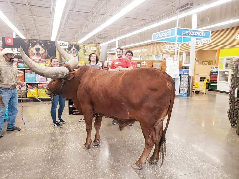 隨著全世界飼養寵物的風氣越來越盛行,許多商店也開始標榜各種「寵物友善」的口號,吸引飼主帶著寵物一起來消費。美國德州就有一家寵物用品店「Petco」開幕,店家喊出「只要有牽繩,歡迎飼主帶寵物進來逛」,讓一名飼養非洲長角牛的牛仔,決定帶著重達725公斤的「寵物」上門挑戰!