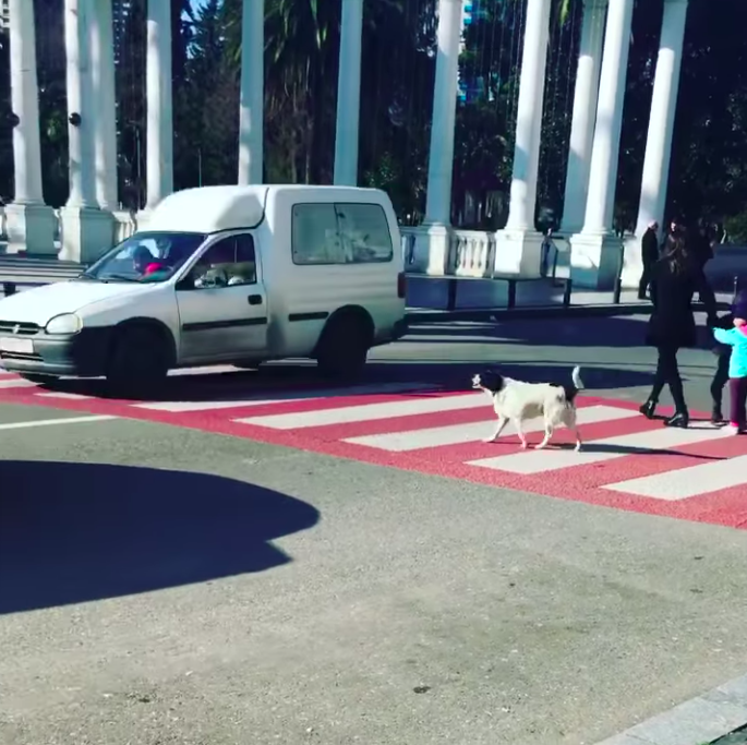 連毛孩都知道要遵守交通規則!喬治亞西南部的阿查拉自治共和國首府巴統(Batumi)有一隻非常聰明的狗狗,牠化身導護犬,護送孩子們過馬路。看到車輛不減速慢行,牠還會衝過去對著汽車吠叫,提醒司機注意行人。