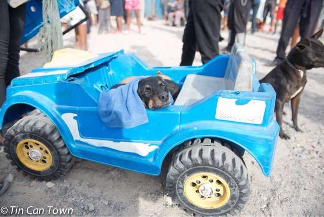 ▼用玩具車拉狗狗非常有趣,Tarryn表示,這裡的人經常用各種各樣的容器裝動物,帶牠們過來接受治療。如果住得遠,人們就將狗狗裝進箱子、盆子,把牠們帶過來。