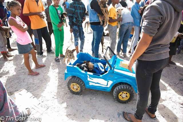 ▼為了幫助這裡的動物,6年前,幾名南非婦女創立了動保組織「罐頭城」(Tin Can Town)。每周日,志工們都會過來為貓咪、狗狗提供免費醫療和救援服務。如果家中的寵物需要幫助,民眾可以把牠們帶過來。