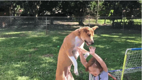2018年10月13日好朋友在一起玩得太瘋時,時常會造成一些意外狀況。下面這段影片中就有一隻狗狗和3歲的小主人在草坪上玩耍,看到空中漂浮的美麗泡泡,狗狗興奮爆衝,歡快的跳起來撲泡泡,沒想到快落地的瞬間發現小主人就在自己身下,當下他的反應讓網友笑翻了。