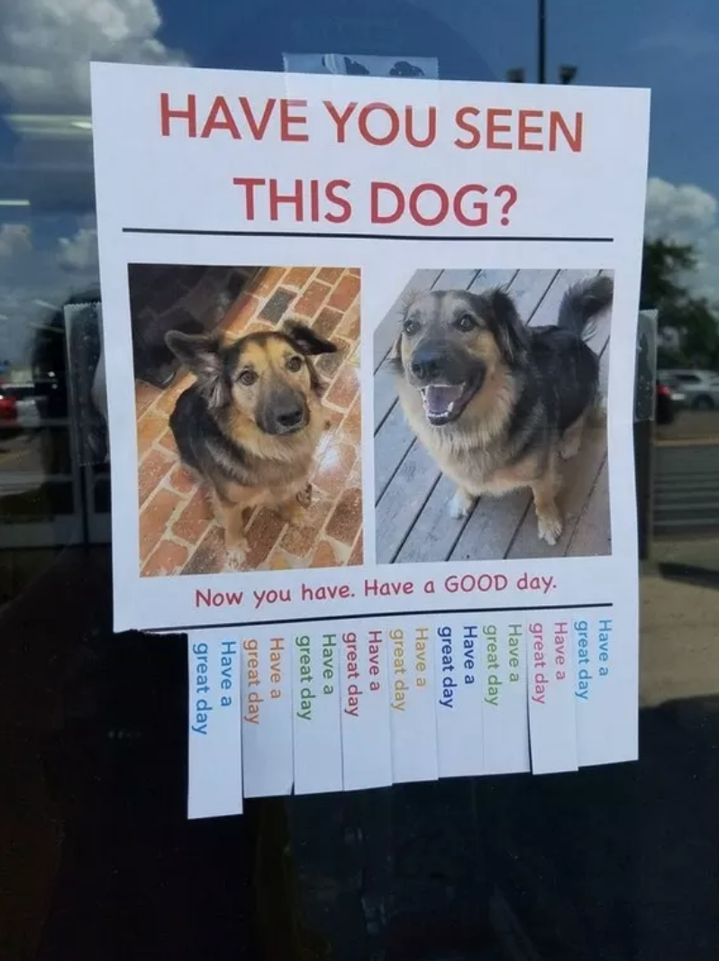 ▼「你有看過這隻狗狗嗎?你現在就看到了。祝你有美好的一天!」