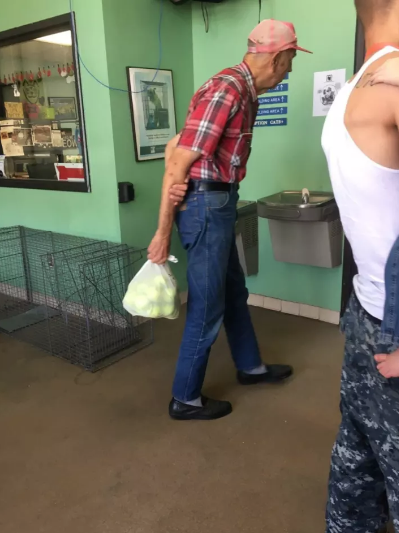 ▼善良的爺爺把網球捐給動物收容所,讓浪浪能夠開心玩樂!