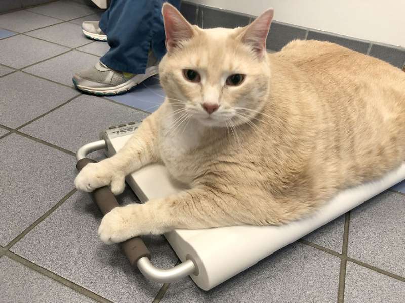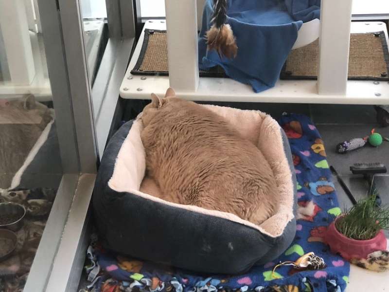 ▼Bronson剛剛3歲,體重就達到了14.85公斤,真的很誇張。牠的上一個主人可能是一位老人,經常餵牠吃剩菜剩飯。