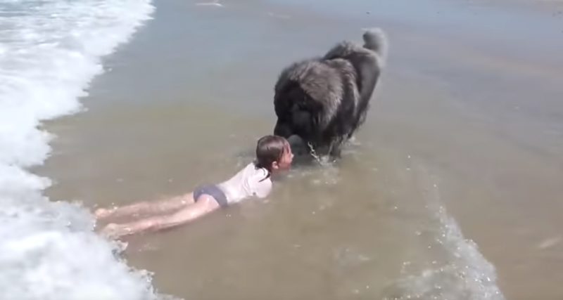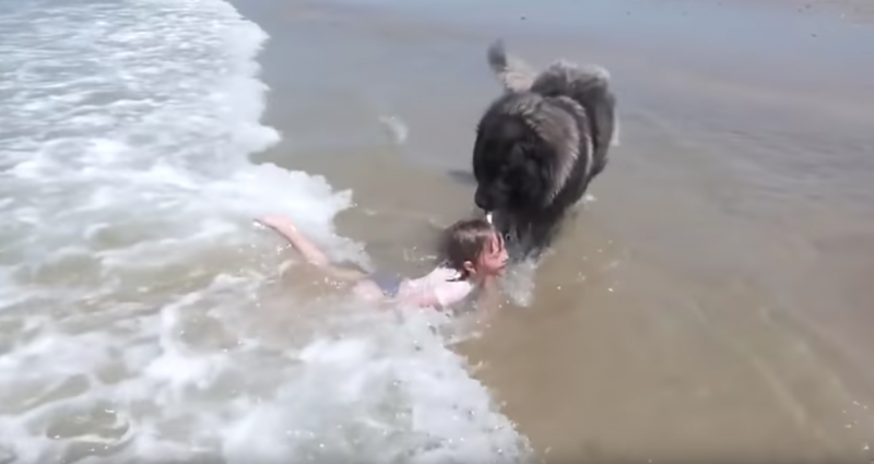 大狗狗怕小主人被海浪捲走 下一秒「英勇救美」超MAN