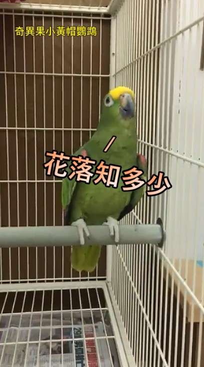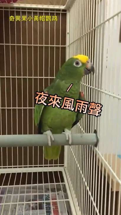 2018年08月24日臉書粉專「奇異果小黃帽鸚鵡」分享了一段令網友噴笑的影片,原來這位飼主養了一隻小黃帽鸚鵡「奇異果」,擁有超強學習能力的牠平常不僅會唱歌,甚至還會默背唐詩呢!