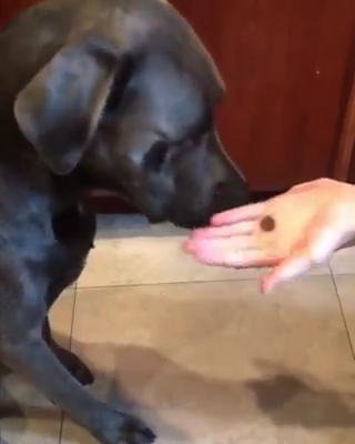 2018年09月24日相信家裡有毛小孩的鏟屎官們,都會跟毛小孩玩玩猜猜零食在哪的遊戲,一名鏟屎官跟汪星人玩起你猜猜看的遊戲,汪星人伸了伸右爪,指著鏟屎官的左拳,一打開,只見一顆零食閃亮亮的躺在鏟屎官左掌上,看的汪星人樂不可支!啊哈!想跟本汪的鼻子玩這小兒科遊戲,根本一塊蛋糕!汪星人熱情的撲上獎品零食,一口吞下,只見鏟屎官緩緩張開右手,那是!那是!那是一堆零食啊~汪星人定睛一瞧,瞬間覺得世界與他為敵,看向鏡頭一臉眼神死。