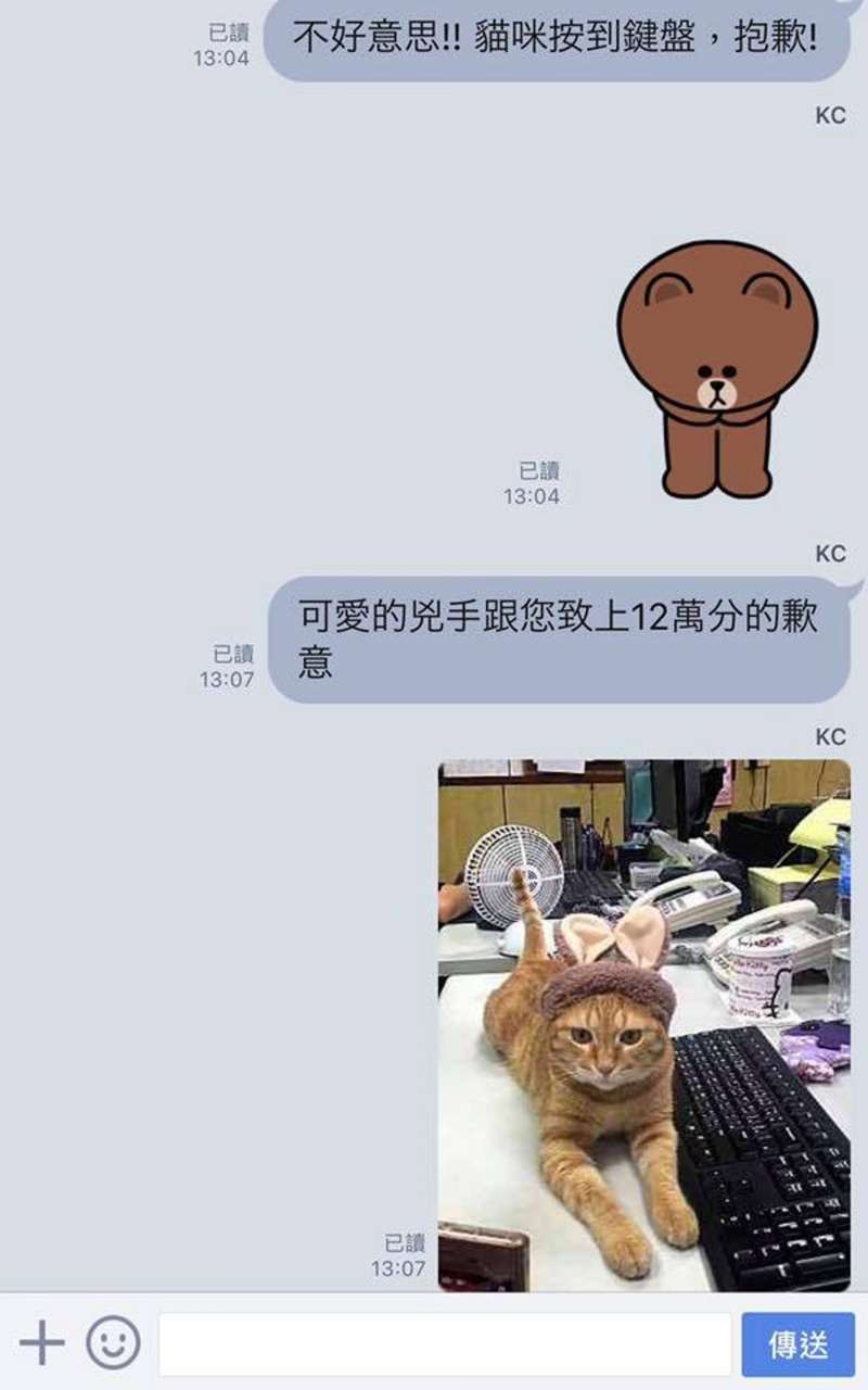 ▼其實洋洋已經不是第一次扮演起「客服」的角色了,之前牠也曾經在20分鐘內用電腦版LINE向對方狂發送「3」,讓員工發現後趕緊向對方解釋「不好意思!!貓咪按到鍵盤,抱歉!」
