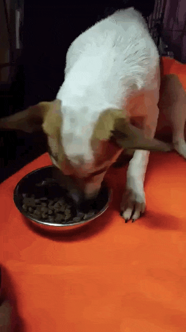 ▼狗狗的身上並沒有掃到晶片…令人慶幸的是,這隻小狗非常健康,胃口也非常好,一看到食物就狼吞虎嚥地吃了起來。