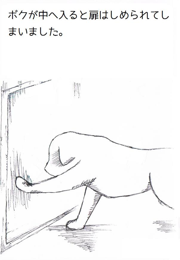 ▼我一進去,門就被關上了。和之前住的籠子不同,這個房間的氣氛好怪,還有輕微的震動感。我突然覺得好害怕,但不論我怎麼努力,門都關得緊緊的。過了一會兒,我的呼吸開始困難。