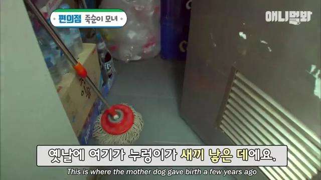 2018年11月25日日前,南韓電視節目「SBS TV동물농장x애니멀봐」拍攝了一對狗母女的故事。狗媽媽懷孕大著肚子,卻經常帶著女兒到便利店來。牠們似乎對這裡很熟悉,知道裡面的人不會趕牠們走。