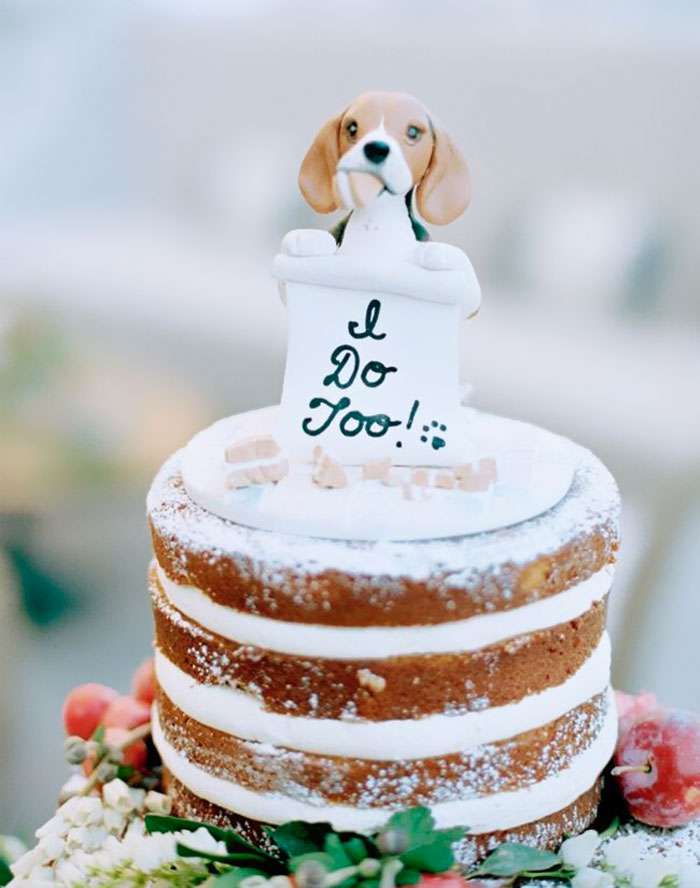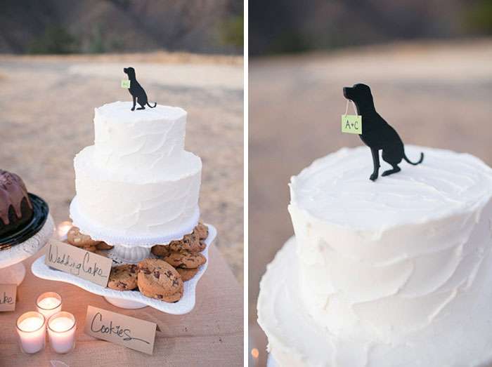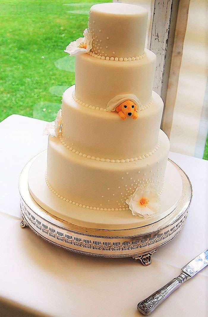 ▼狗狗的加入讓婚禮蛋糕顯得別具一格。