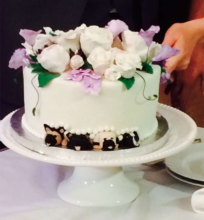 2018年11月25日吉爾和露娜是一對非常愛狗的夫妻,他們喜歡狗狗參與每一件事,就連婚禮也不能缺席,所以狗狗們成為了婚禮蛋糕裝飾的一部分,這讓蛋糕看起來很可愛,也很特別。