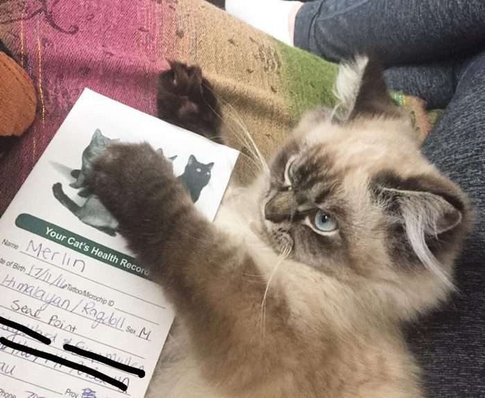 ▼但梅林最尷尬的事情就是永遠無法扮可愛,蝴蝶結也無法拯救牠的憂傷。