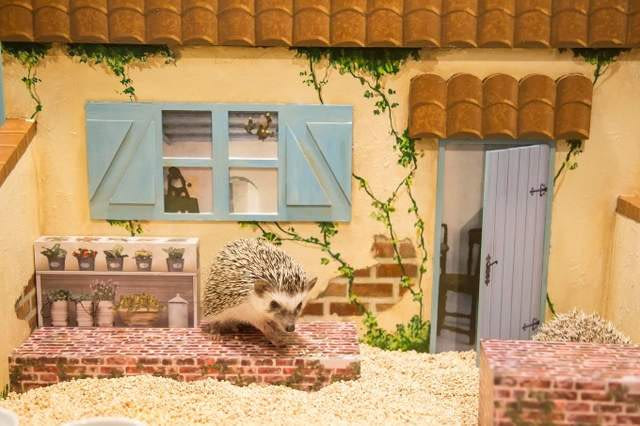 ▼這間咖啡廳創意十足,將小刺蝟的窩佈置成了居家的模樣,好像牠們在童話世界中正常生活一樣。