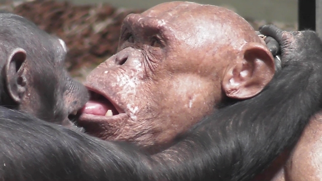 ▼雖不是猩猩群裡標準的美男子,但如此鋼筋鐵骨、擁有一身迷人肌肉的脫毛大猩猩,還是挺有魅力,足以風迷萬千異性的。