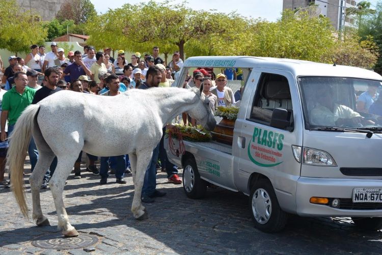 2019年01月04日巴西男子Lima養了一隻很帥氣的白馬Sereno,多年來都把牠當場自己的孩子一樣細心照顧。可惜,34歲的Lima卻不幸失去了性命,留下了Sereno。舉辦葬禮的那一天,弟弟Wando知道Sereno對Lima來說就像家人的存在,於是特別帶著Sereno去參加葬禮…