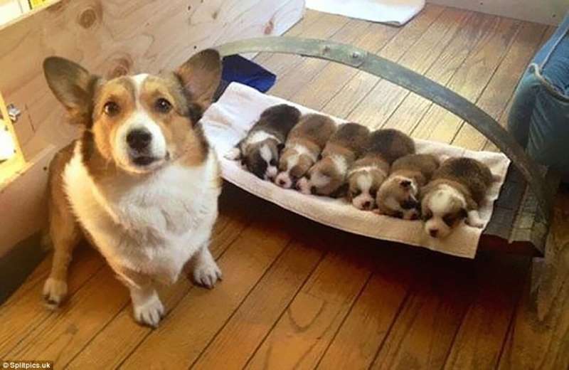 ▼你能數清楚這隻驕傲的狗媽媽生下了幾隻小狗嗎?