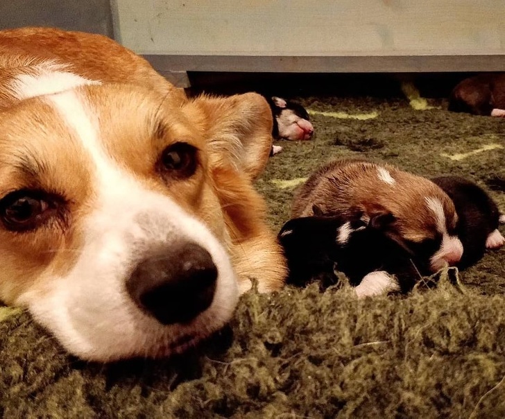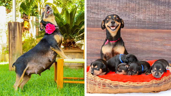 ▼懷孕的狗媽媽與牠生下小孩後的開心模樣!