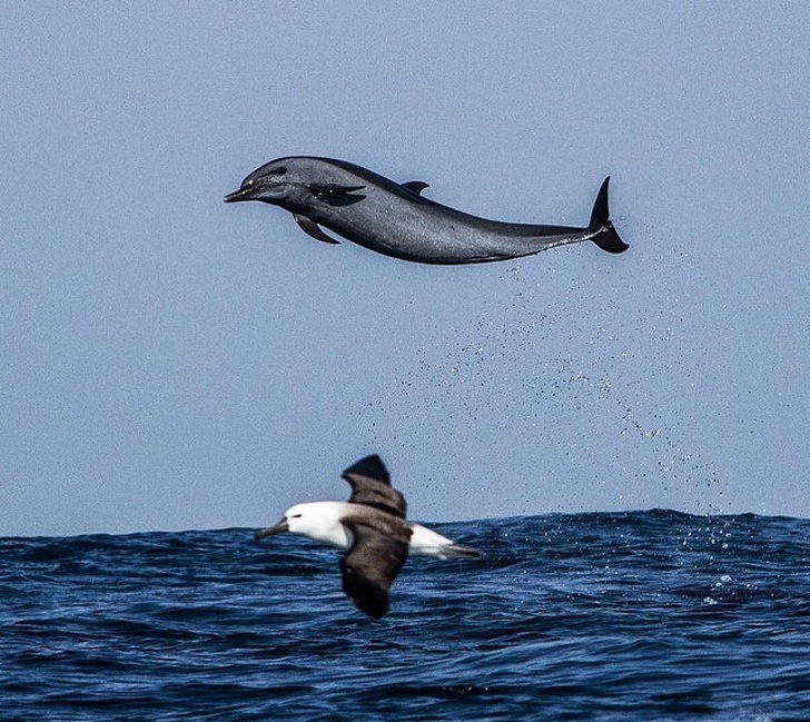 ▼海豚對信天翁展現出自己驚人的彈跳力!