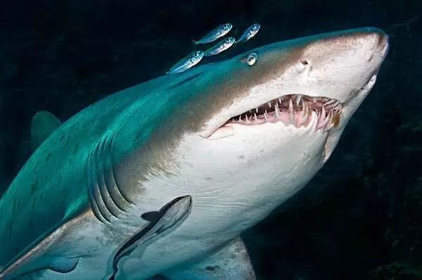 ▼鯊魚一般同時擁有5~6排牙齒,最外排的牙齒起到一般牙齒的作用,其他的幾排牙齒都是備用的,當最外排的牙齒脫落後,裡面的牙齒就會取代外排的空缺,有些鯊魚一生中甚至會替換掉3萬顆以上的牙齒。