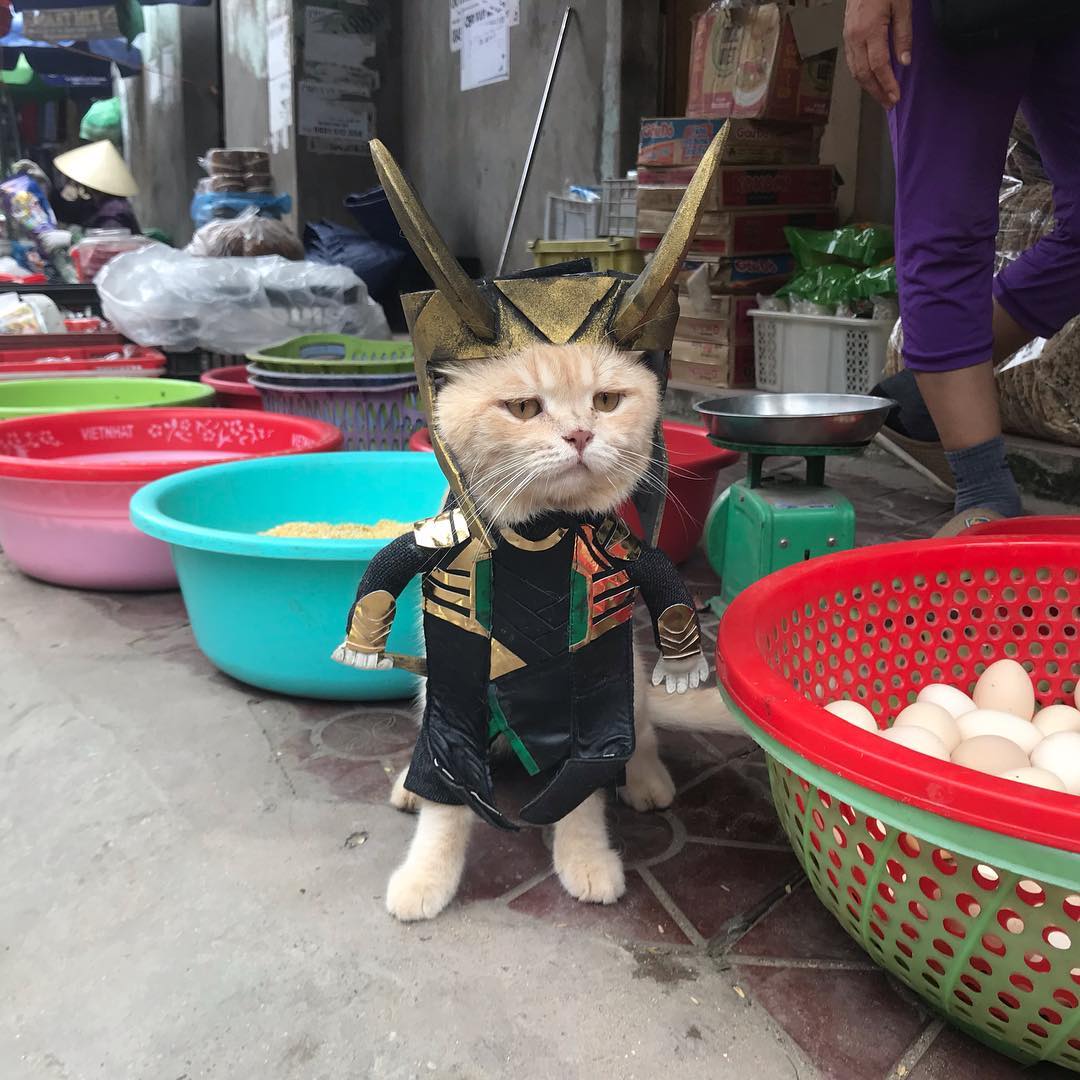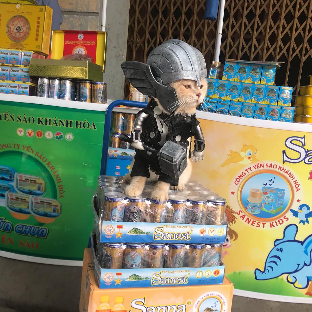 ▼這位身穿「鋼鐵人」戰甲的cosplayer就是「Dog」,牠與主人一起「Le Quoc Phong」一起擺攤賣魚。因為Dog常常cosplay不同的角色,很快成為了這裡的明星。