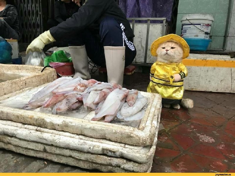 鋼鐵人也會賣魚?「復仇喵聯盟」萌翻菜市場 客人興奮合照❤