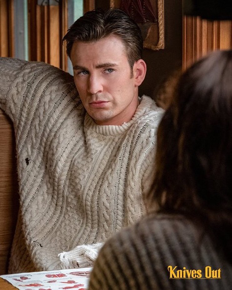 一件普通的白色毛衣,被克里斯伊凡穿得俊俏帥氣。《鋒迴路轉》這部電影真的值得一看,劇情夠燒腦,克里斯伊凡的造型也很棒~