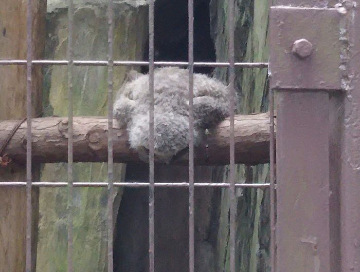 2020年12月22日最近國外推主@reviewwales分享了一張貓頭鷹寶寶睡覺的照片。只見牠臉朝下趴在地上,就像一個喝掛的大叔,看起來很呆萌。推主表示:「我剛剛才發現,因為小貓頭鷹的腦袋太重了,所以才這樣頭朝下趴著睡。另外,我之前好像也沒看過貓頭鷹的腿…」