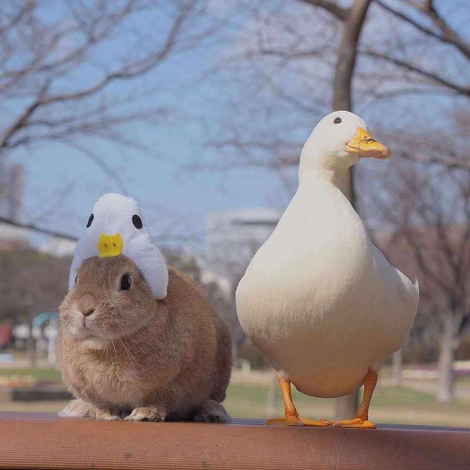 鴨鴨(Instagram)和兔兔(Instagram)的友誼夢幻溫馨,不同物種的動物也能和平相處、感情深厚,這樣的互動暖暖的好甜美!