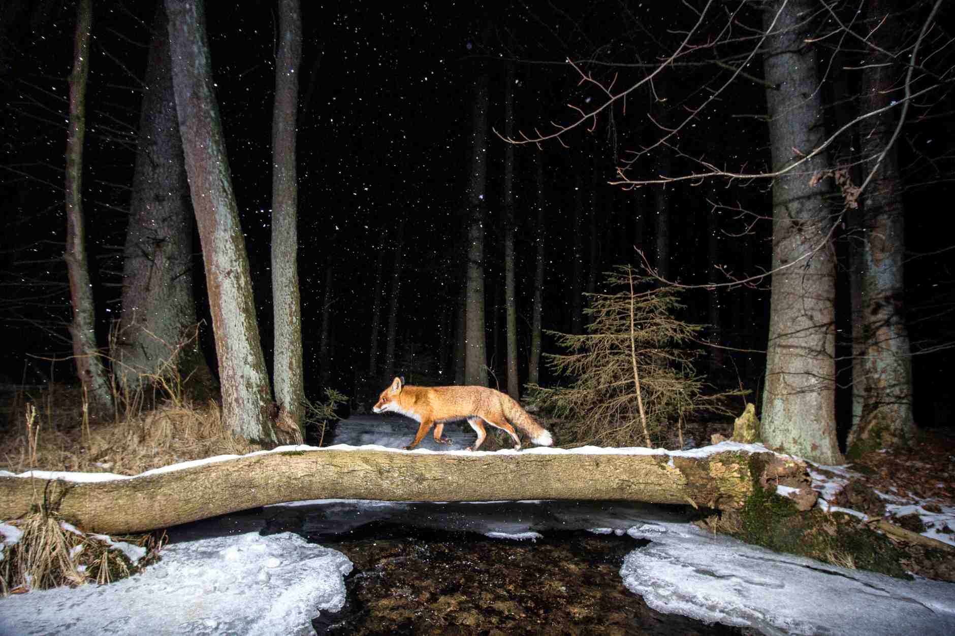 ▼過獨木橋的紅狐: